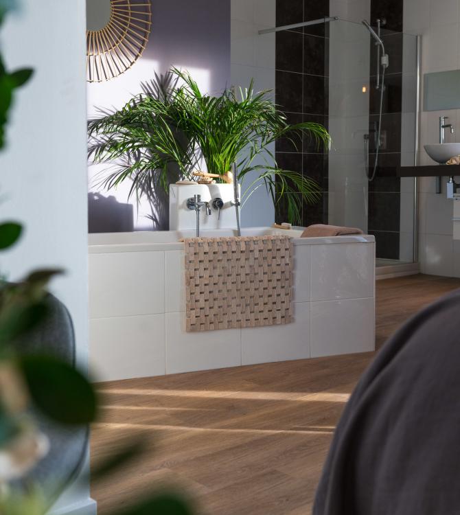 J’étais convaincue – et je le suis toujours – que les dalles et lames Gerflor sont l’allié parfait pour ce projet de rénovation de chambre et salle de bains car :