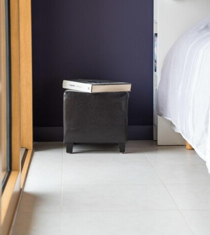 Ils souhaitaient créer une ambiance chaleureuse, cosy et élégante. Pour moi le changement de sol est la clé d’une rénovation réussie, c’est donc l’élément premier à modifier dans cette chambre. Quand on en a discuté, ils m’ont aussi informée de quelques critères importants pour eux. Au-delà de la facilité de pose, ils souhaitent un entretien facile, un coût moindre et un produit made in France.